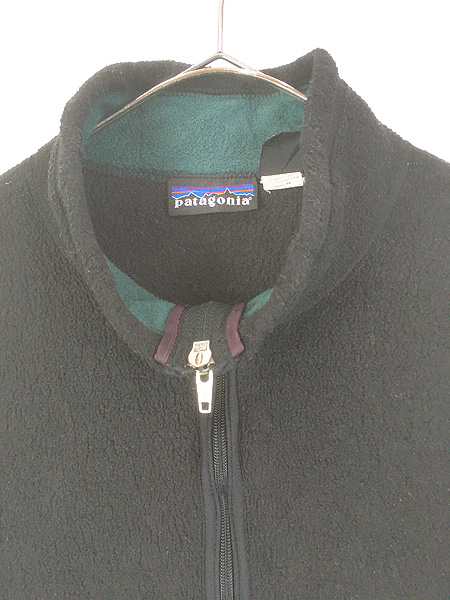 古着 90s- USA製 Patagonia ワンポイント ソリッド シンチラ フリース ベスト ブラック L