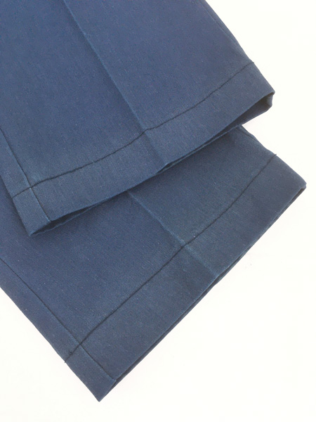 ハリのあるコットンポリ素材・YKKジップ・年代特有の調整用ウエストの縫い合わせ・スリムストレートシルエット。