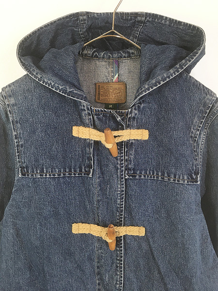レディース 古着 90s LAUREN JEANS メタル トグルボタン デニム ダッフル フーディー コート ジャケット M