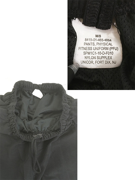 古着 10s 米軍 US ARMY PFU ミリタリー ナイロン トレーニング パンツ オールブラック M/S