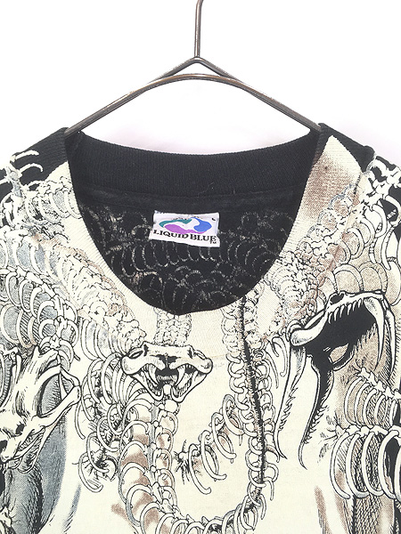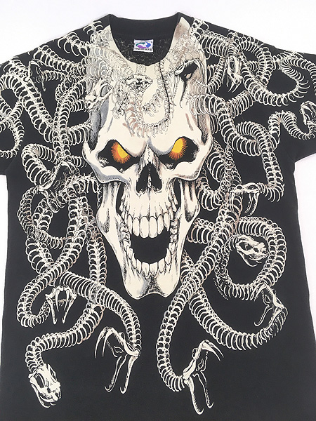 古着 90s USA製 LIQUID BLUE 「Medusa」 メデューサ スカルスネーク オールオーバー Tシャツ L