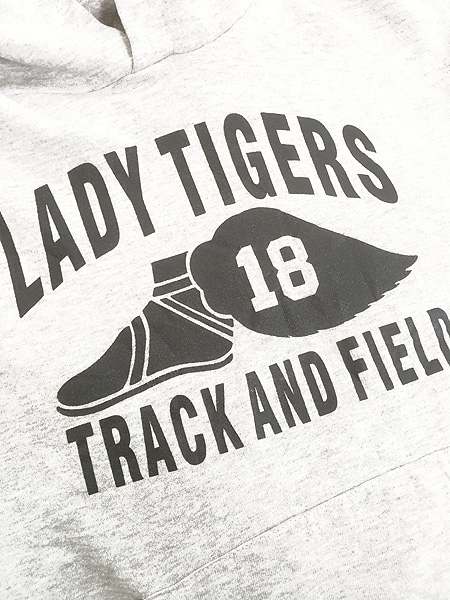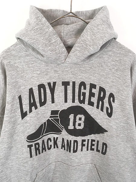 レディース 古着 90s Russell 「LADY TIGERS TRACK AND FIELD」 ウィングフット スウェット パーカー L