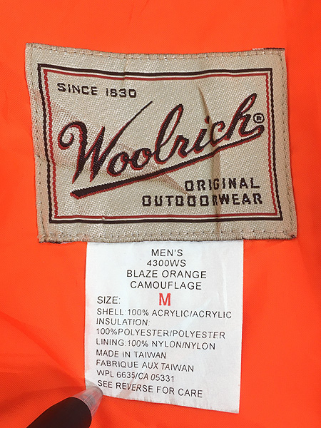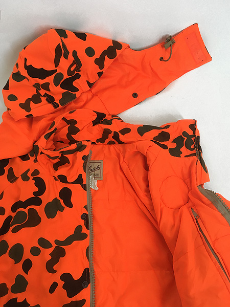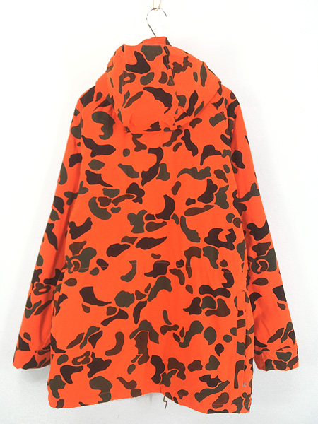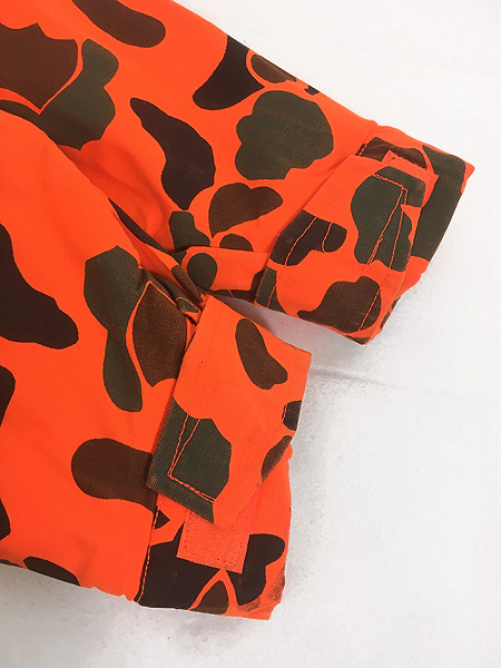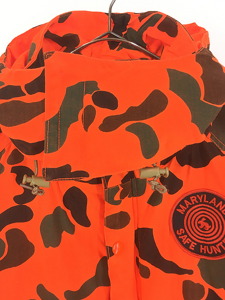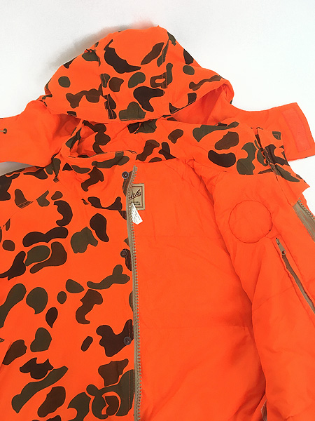 古着 90s WoolRich 蛍光 ダックハンター カモ 迷彩 パデッド ハンティング ジャケット パーカー ブレイズオレンジ M