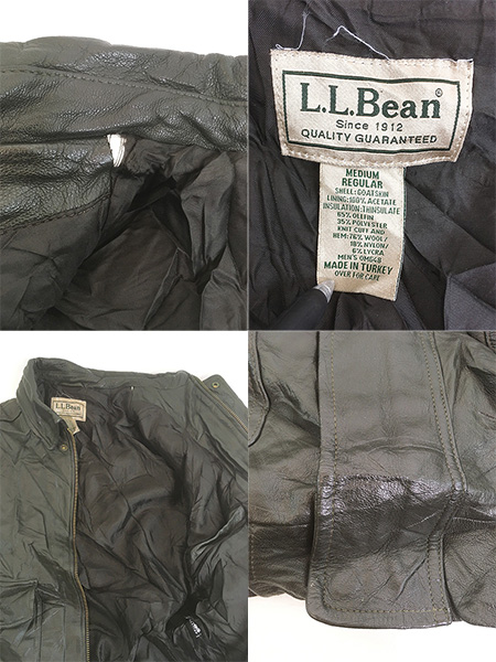 古着 00s LL Bean Type A-2 本革 ゴートスキン レザー パデッド フライング タイガー ジャケット オールブラック M-R