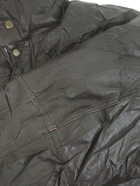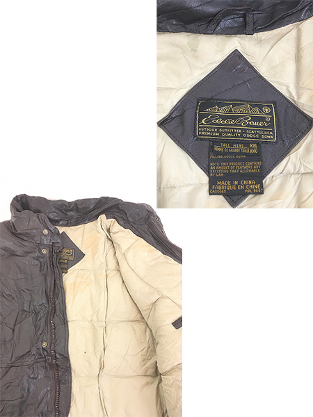 古着 80s Eddie Bauer 比翼 本革 レザー グース ダウン コート ミドル丈 XXL-Tall