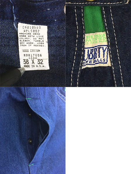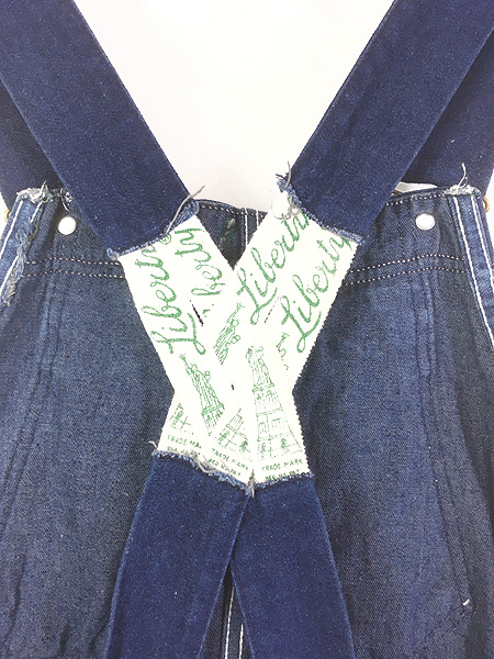 古着 80s USA製 LIBERTY 濃紺 デニム ワーク ローバック オーバーオール サロペット W36 L31