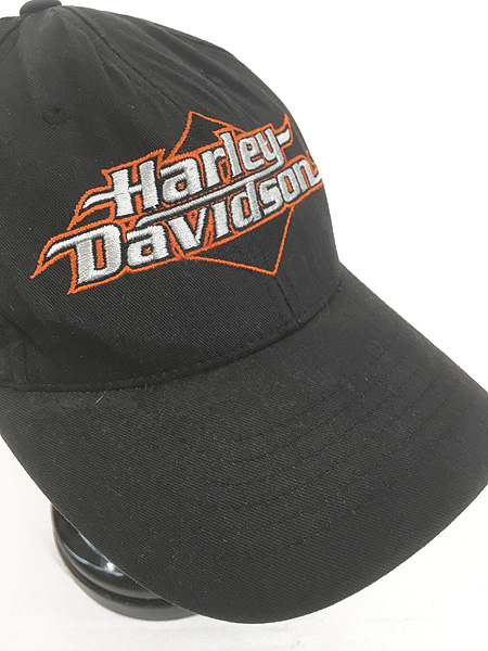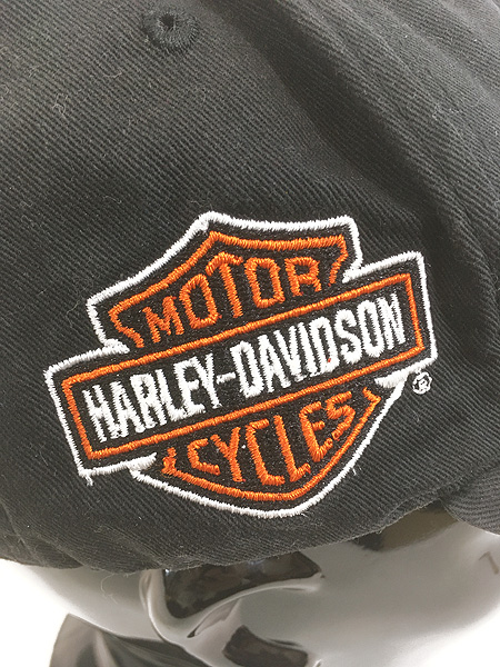雑貨 古着 HARLEY DAVIDSON ロゴ バー&シールド 刺しゅう 6パネル キャップ 黒 帽子