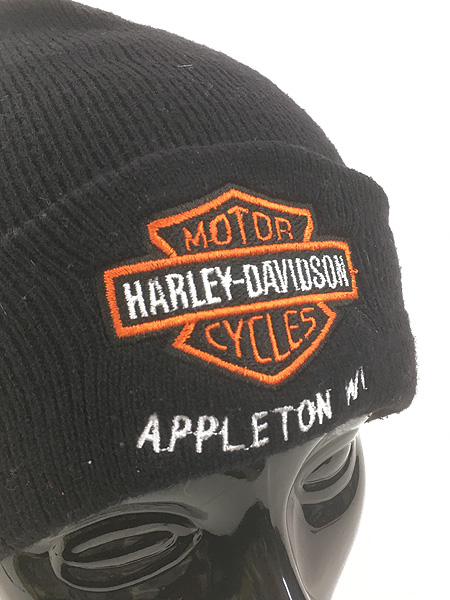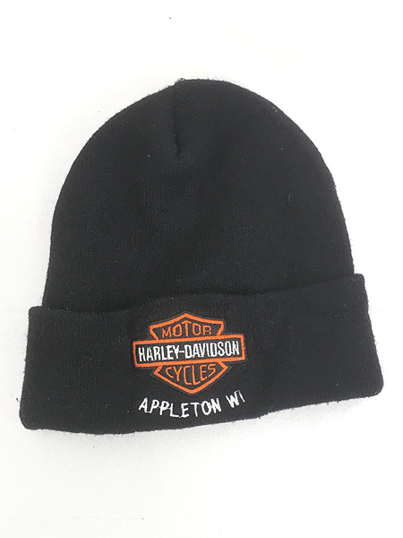 雑貨 古着 90s USA製 HARLEY DAVIDSON バー&シールド ニット ワッチ キャップ ビーニー 黒 帽子