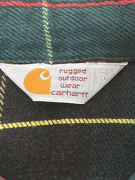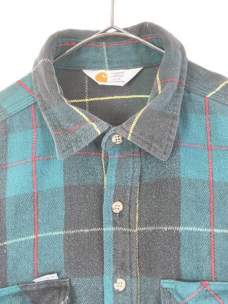 古着 80s- Carhartt グリーン×ブラック チェック ヘビー フランネル シャツ ヘビネル M位