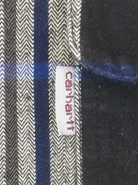古着 Carhartt ブラック×ブルー チェック ヘビー フランネル シャツ ヘビネル XL 美品!!