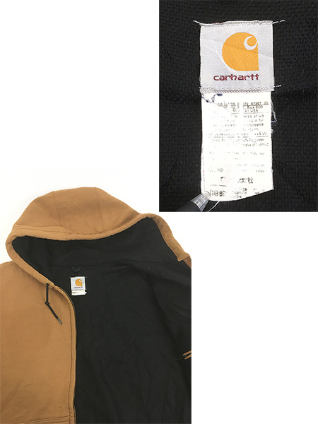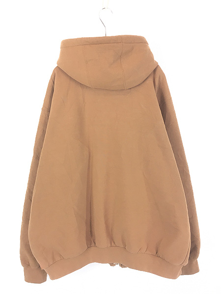 古着 00s Carhartt 裏地 メッシュ ワンポイント パッチ スウェット ジップ パーカー ブラウン XL
