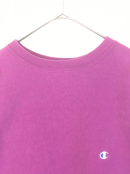 古着 90s USA製 Champion Reverse Weave 青目 ワンポイント リバース スウェット トレーナー パープル L