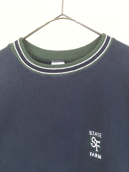 古着 90s USA製 Champion Reverse Weave 「STATE FARM」 刺しゅう リブライン リバース スウェット L