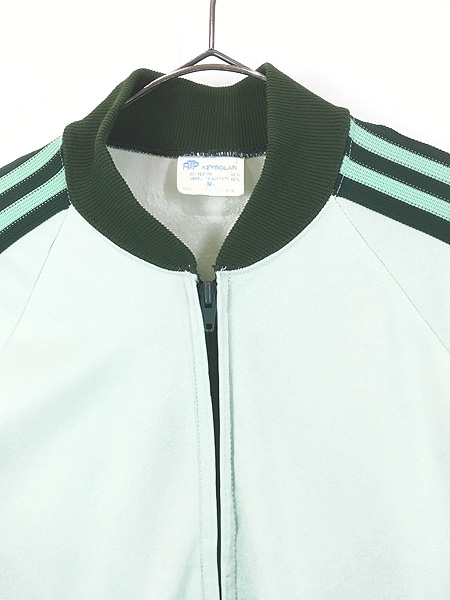 古着 80s USA製 adidas ATP 光沢 ジャージ トップ トラック スーツ ライトグリーン M