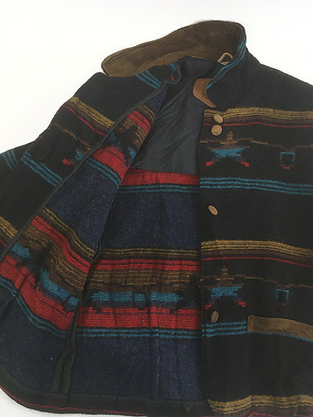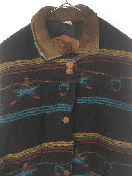 レディース 古着 80s USA製 WoolRich 星 ネイティブ チマヨ 総柄 ウール ブランケット カバーオール ジャケット M