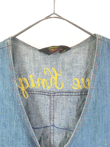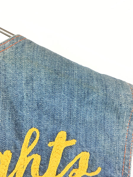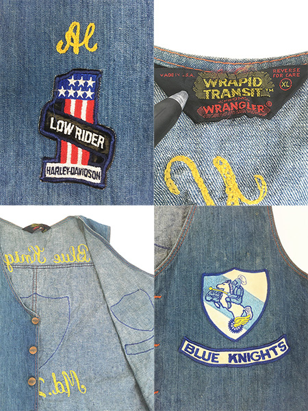 古着 70s USA製 Wrapid Transit by Wrangler 「Blue Knights」 豪華 チェーン ステッチ モーター サイクル デニム ベスト XL