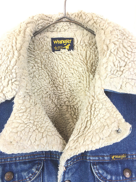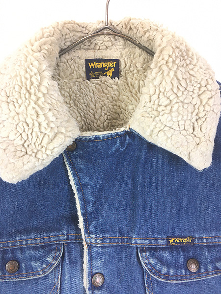 古着 80s USA製 Wrangler 濃紺 デニム ボア ランチ ジャケット Gジャン XL位