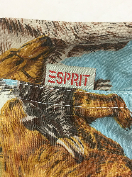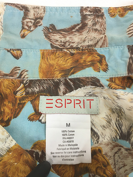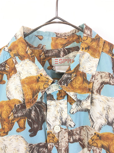 古着 90s ESPRIT 熊 クマ 総柄 マルチ アート コットン シャツ M