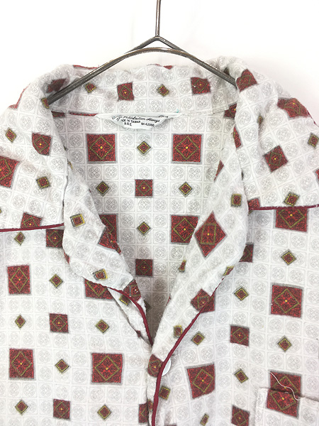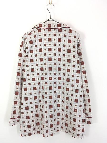 古着 70s K-mart 小紋柄 総柄 開襟 フランネル コットン パジャマ シャツ ネルシャツ L