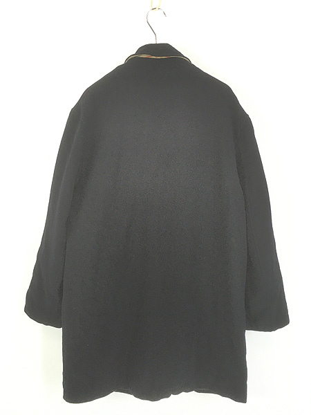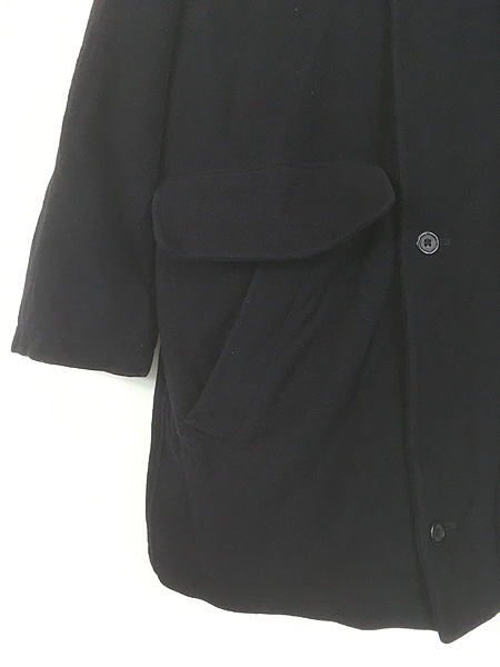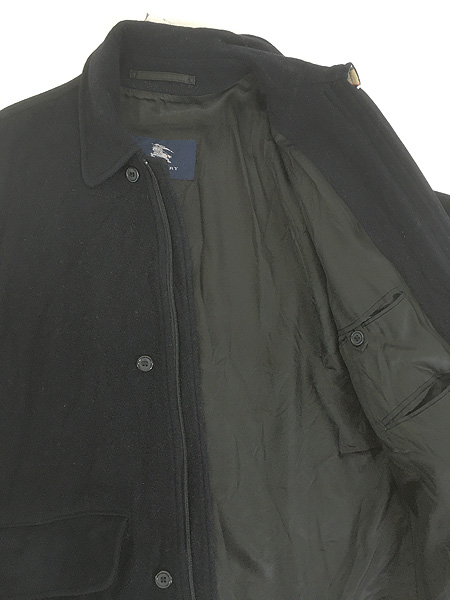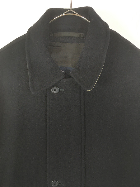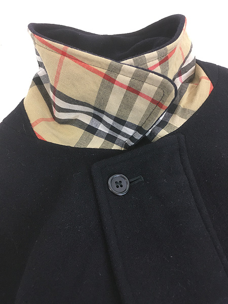 古着 00s Burberry London チェック カラー 比翼 ステンカラー フランネル ウール コート ブラック S