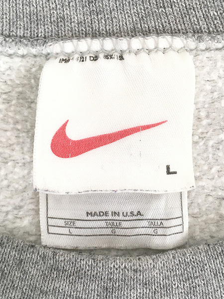古着 90s USA製 NIKE スウォッシュ ワンポイント ソリッド スウェット トレーナー グレー L