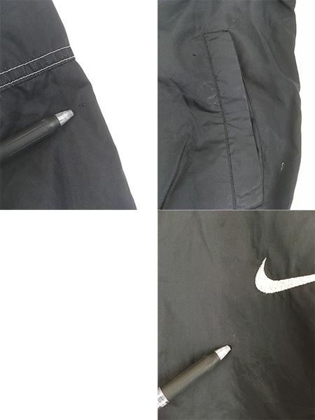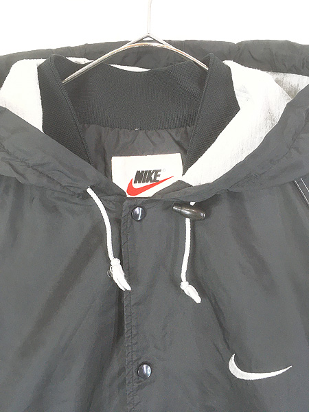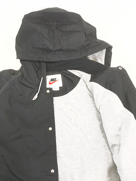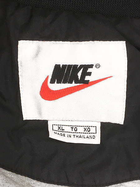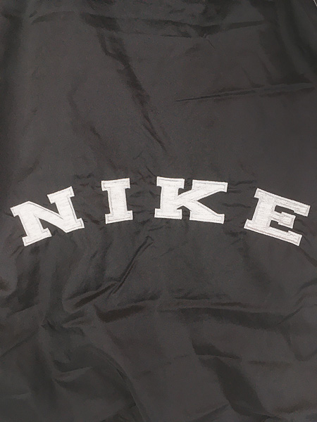 古着 90s NIKE 裏地 天竺 両面 ロゴ 刺しゅう ナイロン フーディー スタジアム ジャケット スタジャン XL