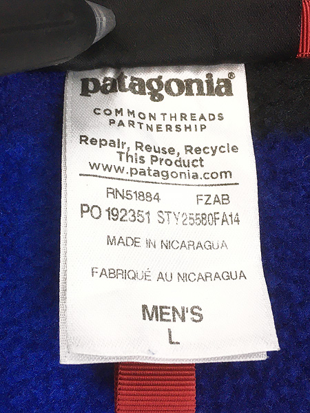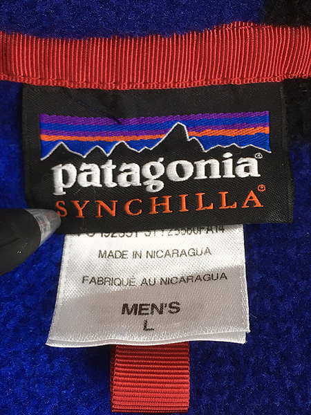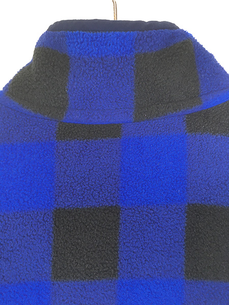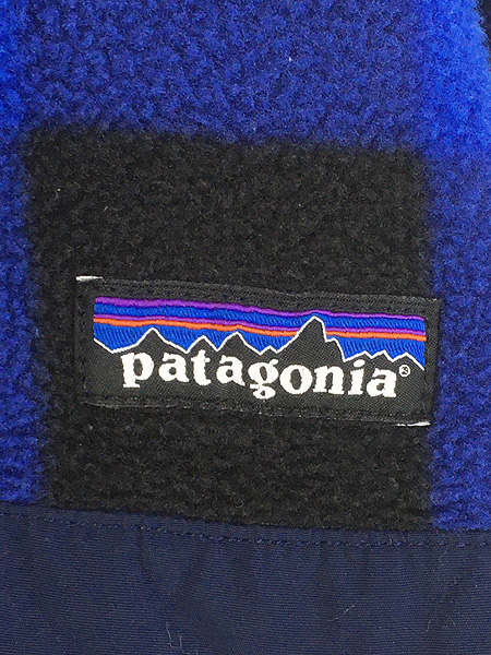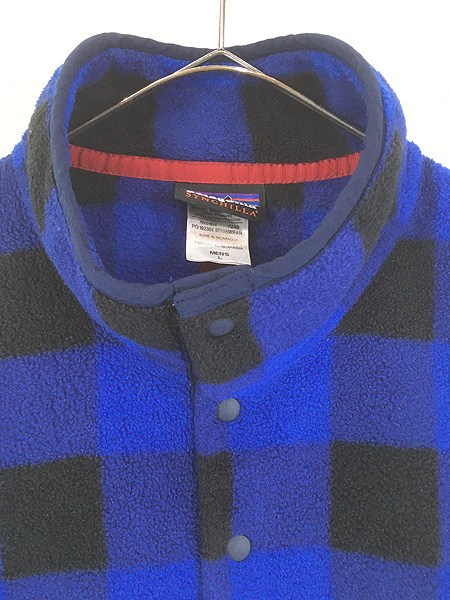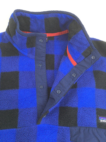 古着 14s Patagonia スナップT ブルー バッファロー チェック 総柄 シンチラ フリース ジャケット L