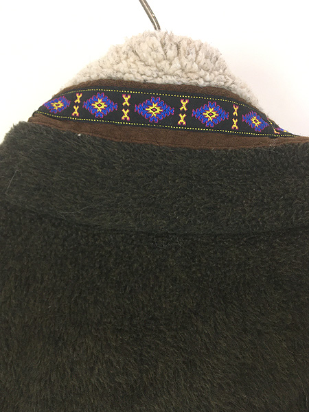 古着 90s USA製 alf アルフ チロリアン テープ フェイクレザー 切替 ジップアップ ボア フリース ジャケット XL