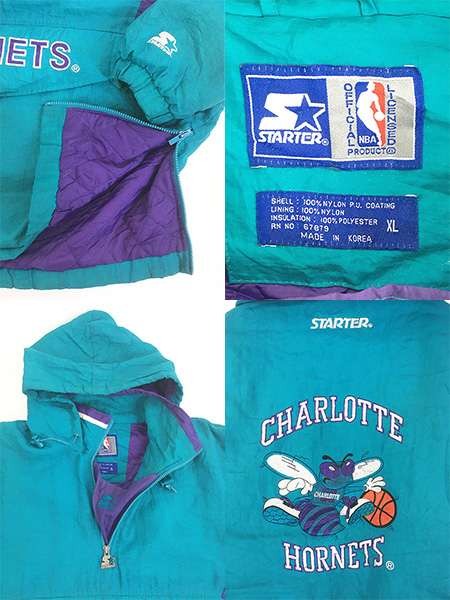 古着 90s STARTER NBA Charlotte Hornets ホーネッツ パデット ジャケット パーカー L