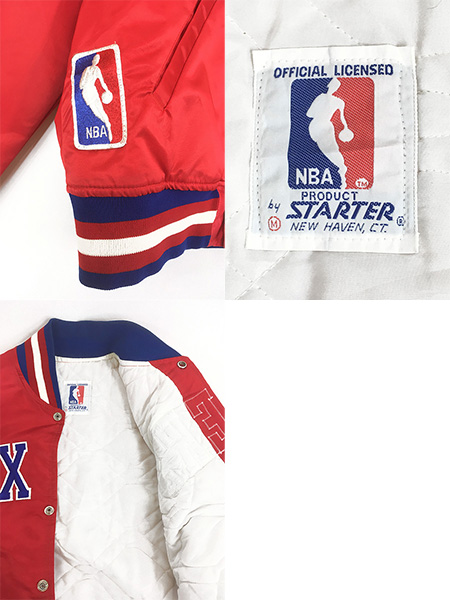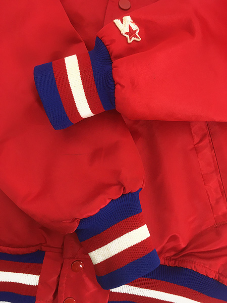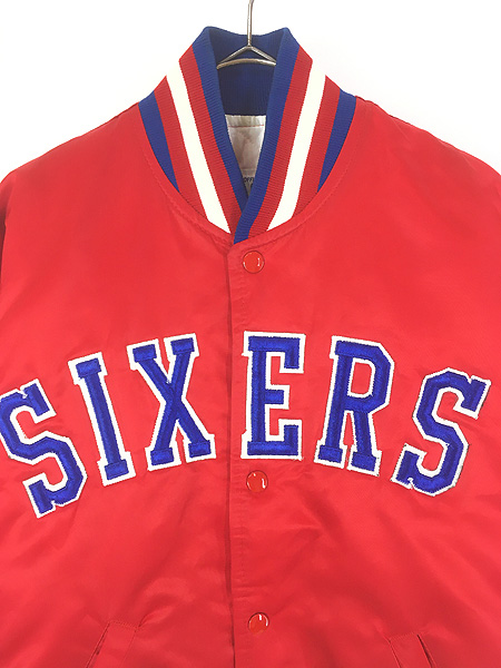 古着 80s USA製 STARTER NBA Philadelphia 76ers SIXERS 光沢 サテン オフィシャル スタジアム ジャケット スタジャン M