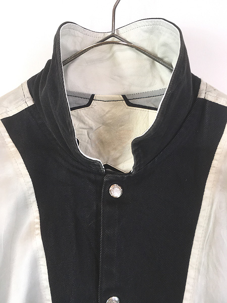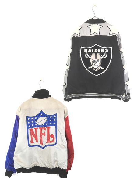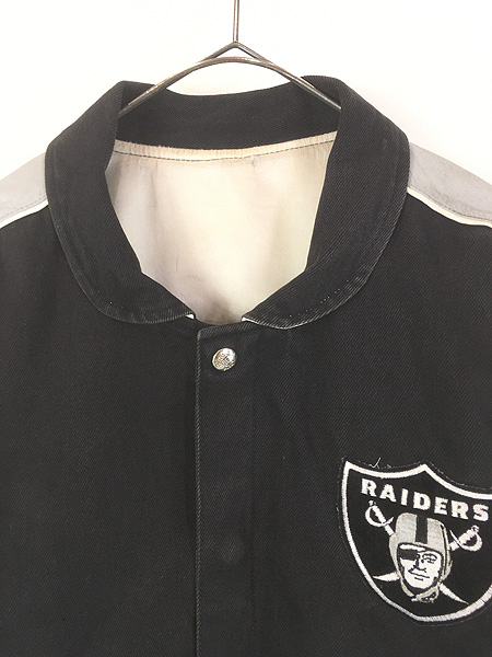 古着 90s USA製 Jeff Hamilton × Oakland Raiders レイダース レザー&キャンバス × 光沢 サテン リバーシブル ジャケット L