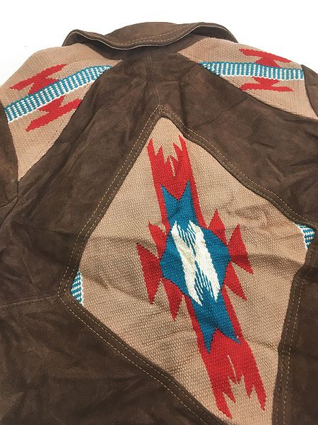 レディース 古着 70s MS. PIONEER ネイティヴ チマヨ ブランケット ヨーク 本革 スエード レザー ジャケット 12 M位