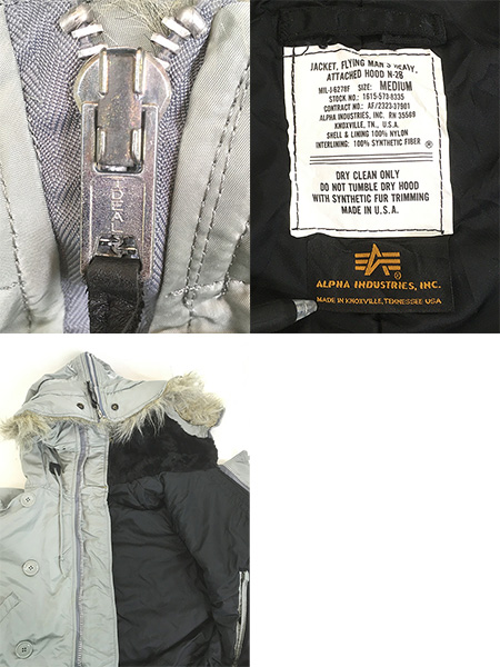 古着 80s USA製 ALPHA INDUSTRIES N-2B 6278F ファー フード ミリタリー 防寒 フライト ジャケット シルバー M