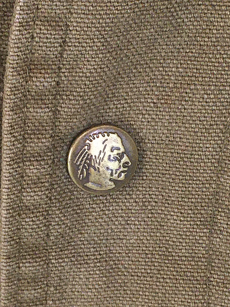 強度のあるコットンダックシェル・裏地モコモコのアクリルボア・インディアン刻印ボタン。