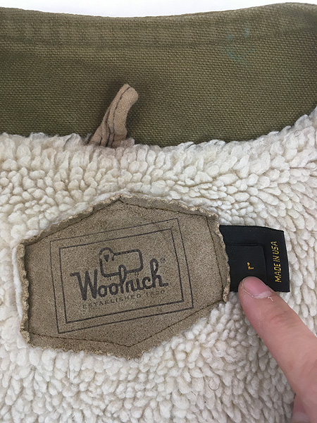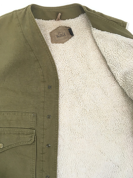 古着 90s USA製 WoolRich パイル ボア フリース ライナー コットン ダック ハンティング ベスト オリーブ L