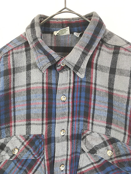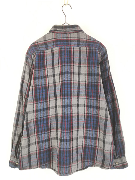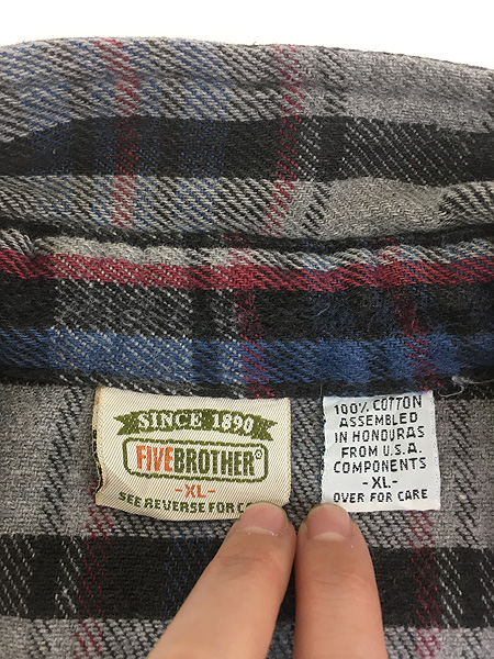 古着 90s FIVE BROTHER グレー チェック ヘビー フランネル コットン シャツ ヘビネル XL