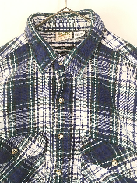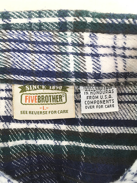 古着 90s FIVE BROTHER ブルー チェック ヘビー フランネル コットン シャツ ヘビネル L