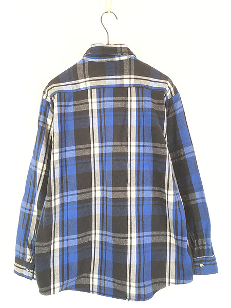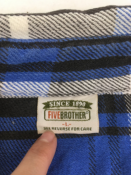 古着 90s USA製 FIVE BROTHER ブルー × ブラック チェック ヘビー フランネル コットン シャツ ヘビネル L