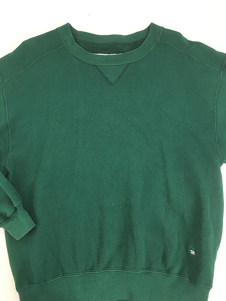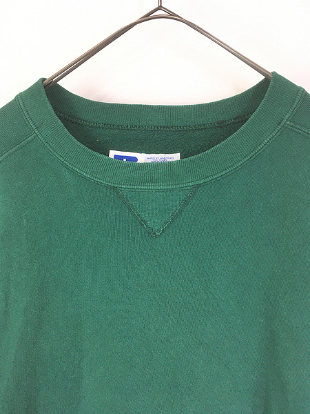 古着 90s USA製 Russell High Cotton 無地 プレーン 前V セットイン ヘビー スウェット トレーナー グリーン M