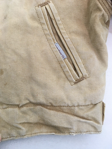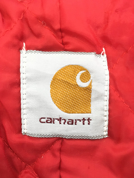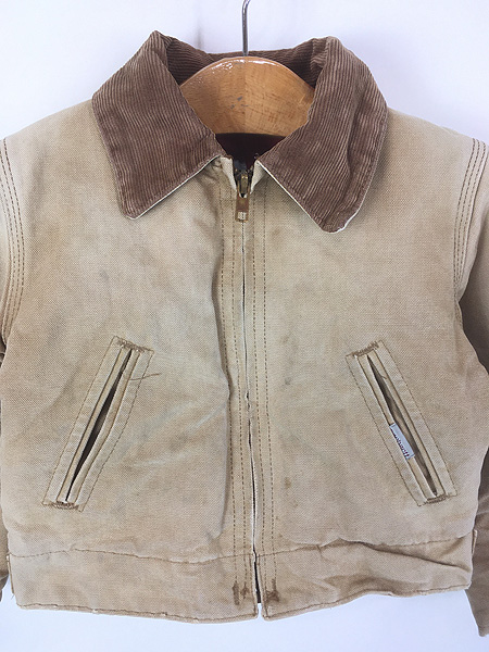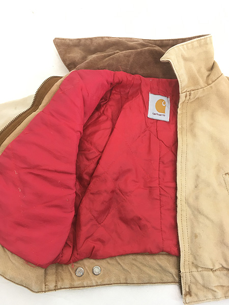キッズ 古着 80s- Carhartt レッド キルティング ライナー ブラウン ダック デトロイト ジャケット ポケットなし 4歳位