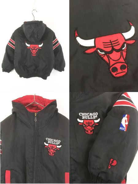 キッズ 古着 90s NBA CHICAGO BULLS ブルズ パデット リバーシブル ナイロン ジャケット P/S 8歳