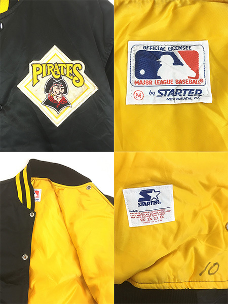古着 80s STARTER MLB Pittsburgh Pirates パイレーツ パデッド 光沢 サテン スタジャン ジャケット M