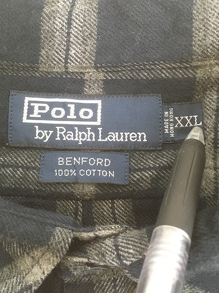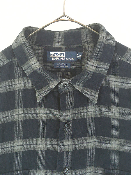 古着 Polo Ralph Lauren 「BENFORD」 ダーク チェック ポケット付 ボックス フランネル シャツ ネルシャツ XXL
