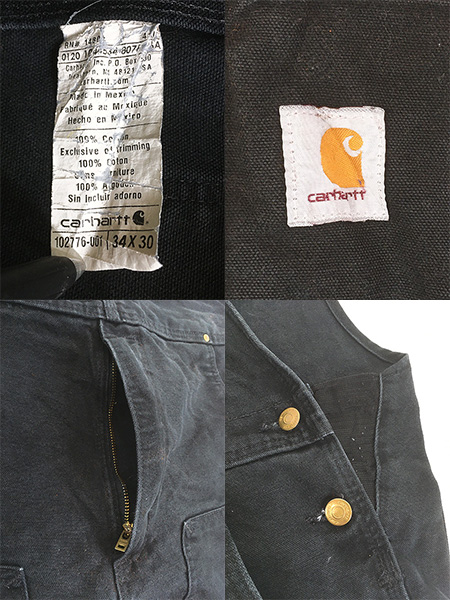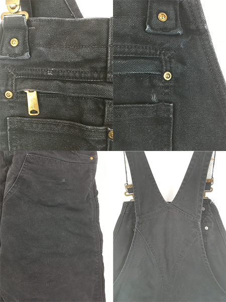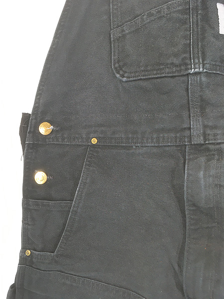 古着 Carhartt BLK ブラック ダック サイド ゴム Wニー ワーク オーバーオール W40 L27