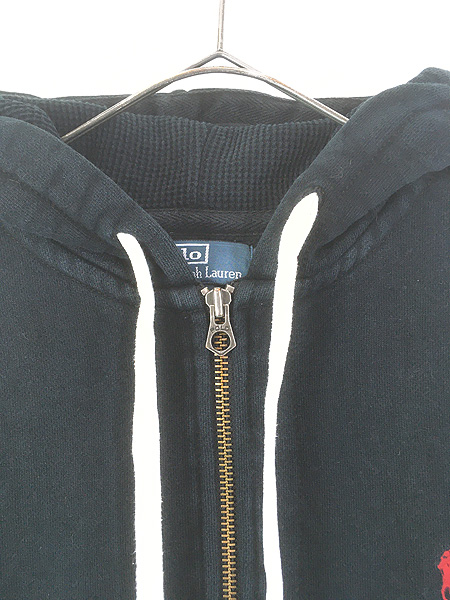 古着 Polo Ralph Lauren フード裏 サーマル ワンポイント ソリッド スウェット ジップ パーカー ネイビー L