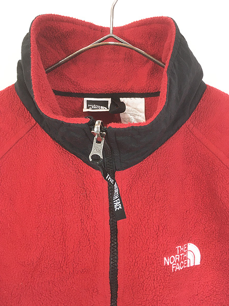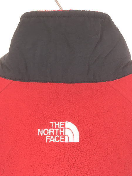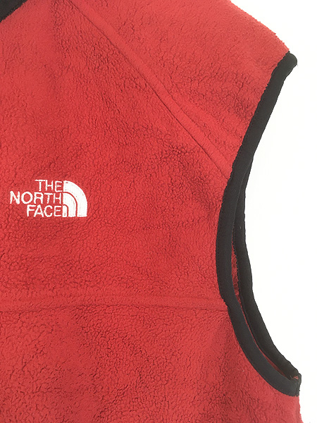 古着 90s TNF The NorthFace ロゴ 刺しゅう レッド×ブラック フリース ベスト M