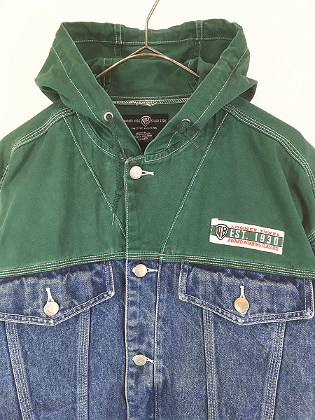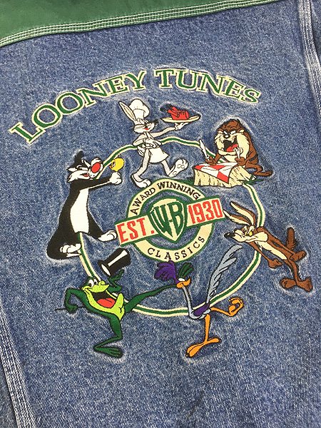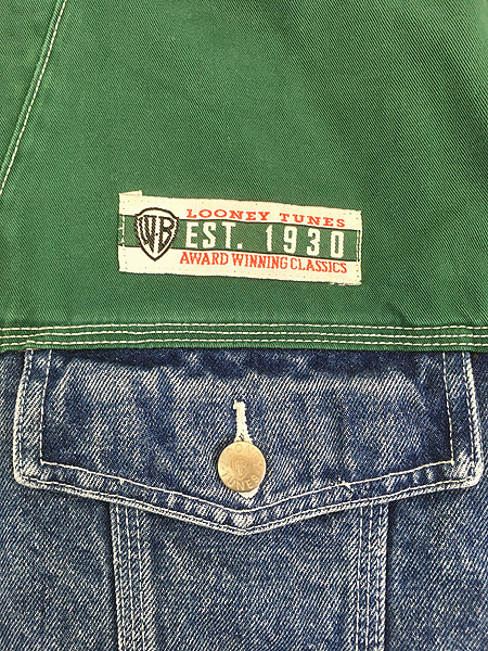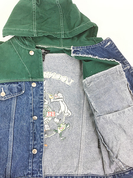 レディース 古着 90s WARNER BROS LOONEY TUNES 刺しゅう コットンツイル フーディー デニム ジャケット Gジャン S
