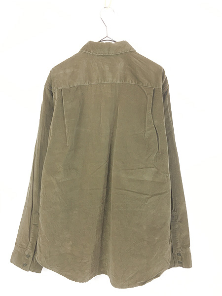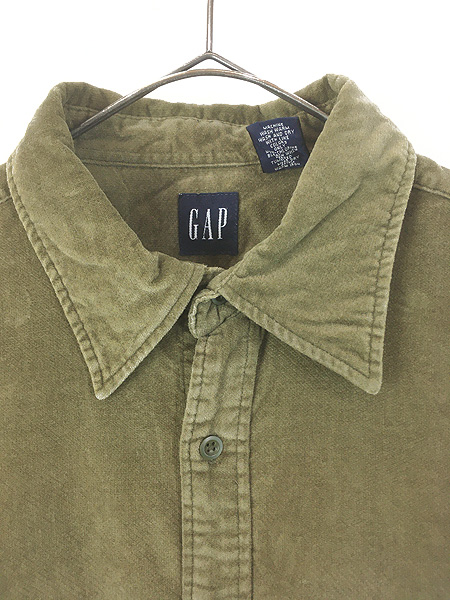 古着 00s GAP 無地 ソリッド ダークオリーブ ベロア ベルベット シャツ L