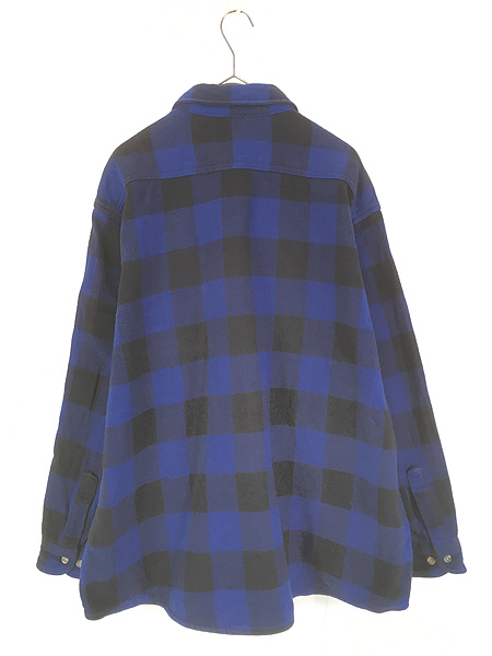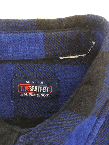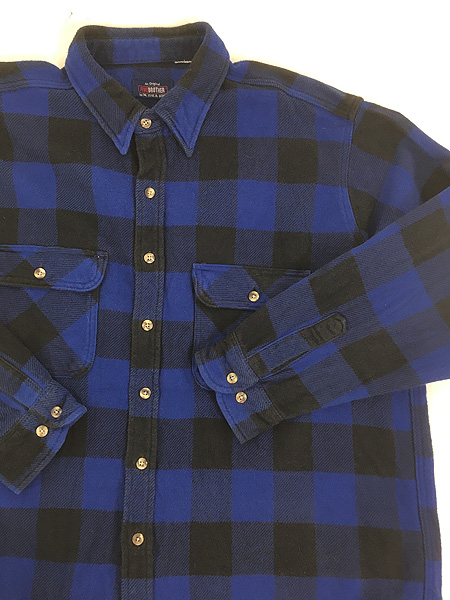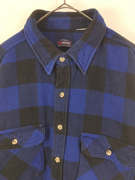 古着 00s FIVE BROTHER 好配色 ブラック × ブルー ブロック チェック ヘビー フランネル シャツ ヘビネル XL位
