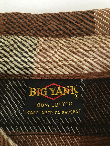 古着 70s BIG YANK ブラウン ブロック チェック ヘビー フランネル シャツ ヘビネル L位